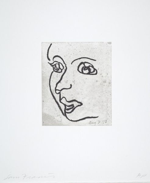 Sam Francis made this self-portrait with ink on paper, with a clear love for the process. It’s a dance of line, a sketch that feels both immediate and deeply considered. What strikes me is the starkness. The drawing itself is minimal, just a few lines defining a face, floating on this vast white field. The texture of the paper adds a subtle graininess, a physical presence that contrasts with the ephemeral quality of the ink. Look at the line that forms the nose – it’s not just a line, it’s a gesture, a quick flick of the wrist that captures the essence of a nose without getting bogged down in detail. It’s confident, almost arrogant, like Francis is saying, "This is all you need to see." Francis reminds me of Cy Twombly, in that they both use gesture to hint at something deeper, something beyond representation. They invite you to complete the picture, to bring your own experiences and interpretations to the work. It's a reminder that art is never finished, it's always in dialogue, always changing with the viewer.