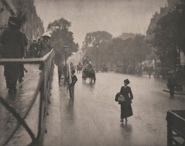 This photograph of a woman on the Prinsengracht in Amsterdam was taken by George Hendrik Breitner. Breitner worked in the Netherlands at the turn of the 20th century, a period of rapid social and economic change, driven by industrialization. The artist was fascinated by the raw, unvarnished realities of urban life. This image offers a glimpse into the world of a woman navigating the bustling city. Her attire suggests she belongs to the middle class, and her presence on the canal hints at the growing role of women in public life. Breitner was associated with the Amsterdam Impressionism movement. He embraced photography as a tool for capturing fleeting moments and everyday scenes, rather than staged or idealized portraits. By studying photographs like these, and considering the historical context in which they were made, we can better understand the changing social dynamics of the time.
