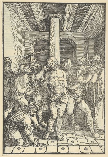 Editor: This is "Christ Crowned with Thorns" by Aert Mytens. It's an oil painting depicting a really brutal scene. What strikes you most about this piece? Curator: It's a scene of abject cruelty, isn't it? Notice how the figures surrounding Christ lack individuality. They become symbols of systemic oppression, acting out a pre-ordained script of violence. Editor: I see what you mean, they seem almost robotic. What does that suggest? Curator: It highlights the dehumanizing nature of power structures. Mytens invites us to consider how easily individuals can become instruments of injustice when absolved of personal responsibility. It feels relevant even today. Editor: That's a powerful connection. I hadn't considered the painting in that context. Curator: Art often acts as a mirror reflecting our own societal failings, doesn't it? It asks us: who holds the power, who is subjected to it, and how do we resist?