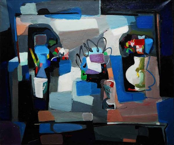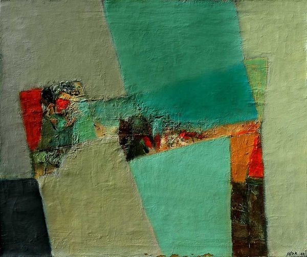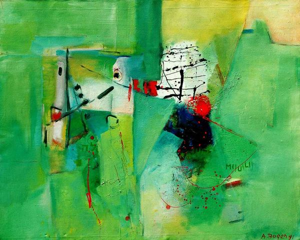 Alexander Bogen made this painting called ‘Construction’ with oil paint, and judging from the signature, sometime in 1969. I love how the angular shapes dance across the canvas like pieces of a puzzle, or maybe shards of glass reflecting a fractured world. The materiality of the paint is really important here. Bogen lays down thick, juicy strokes of blues, whites, and greens. Zooming in, you can see the texture, the subtle ridges where the brush dragged the pigment across the surface. Look at the top right, there's this patch of bright white, almost like a highlight, and then the little pink and red mark nestled inside of it. It’s an accent that electrifies the composition. It reminds me a little of Joan Mitchell’s paintings, in the way that both artists use abstraction to convey a sense of emotional intensity. What’s so cool about art is that it's not about answers, but about possibilities. It’s an invitation to play with ideas and see the world in a new way.