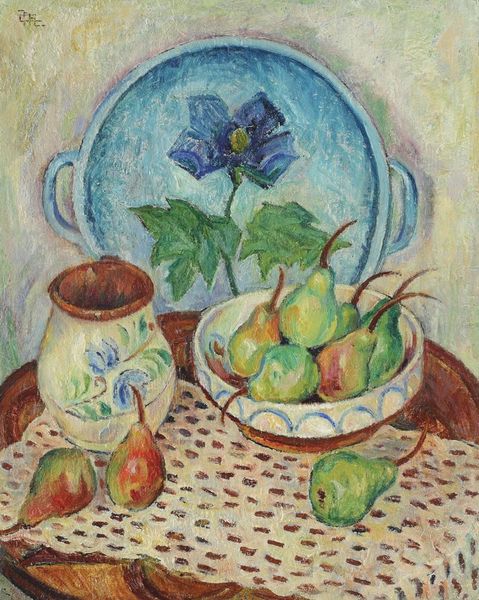 Samuel Peploe made Jug and Yellow Fruit, a painting, maybe without a specific date, but definitely with oil paint. Look at how Peploe builds the forms with these juicy strokes, like he's wrestling the paint into submission, but also letting it have its say. The blues and greens, they're not just colors, they're moods, emotions, like the whole scene is breathing. The textures jump out. You can almost feel the cool smoothness of the jug, and then, bam, the rough skin of those fruits. See how the light hits the side of the jug, those layers of blues, greens, and whites? It’s like he's not just painting what he sees, but how he feels about it. It's not precise, it's not perfect, but that's where the magic is. It’s like he’s whispering, “Here’s a painting, but it’s also a conversation, a question, a feeling.” You could see a similar approach in the work of someone like Bonnard, that same embrace of color and light, but with Peploe, there's this rugged honesty, this sense of the paint itself being the subject. It's less about capturing reality and more about creating a new one.