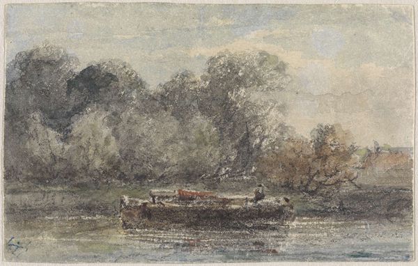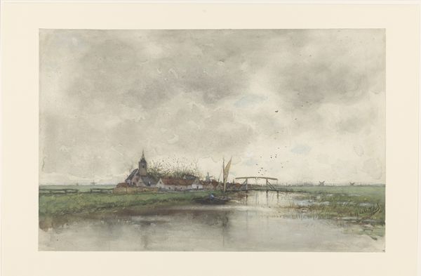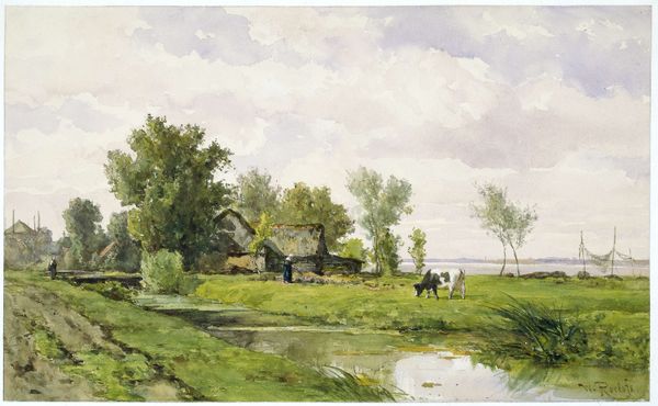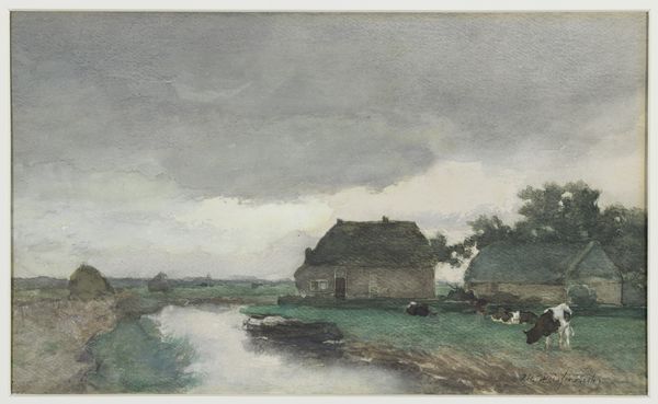 Johannes Abraham Mondt made this river landscape with farm probably outdoors, en plein air, with watercolor. I love how the muted colors, a bit greyed-out, give it such a specific feel. You know, the way the weather can really change your mood. Looking closely, you can see how Mondt built up the image in layers, letting the paper shine through. See the way the brushstrokes in the trees kinda blend together? It's like he's capturing the essence of the scene, not every single detail. The texture's so subtle, almost like a memory. It reminds me of the Barbizon school, those painters who were all about capturing the quiet beauty of the French countryside. But what's really cool is how Mondt leaves so much open to interpretation. There’s a kind of deliberate ambiguity, like the painting is always changing depending on how you look at it. That's what keeps me coming back.