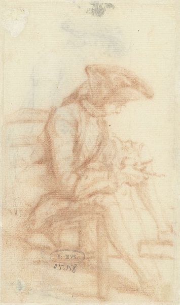 Curator: We're looking at a preparatory drawing by Benjamin West, titled "Costume Study for the Portrait of a Lady." It's rendered in pencil. What stands out to you initially? Editor: The facelessness. It feels almost… haunting. Like a ghost sitting there. It's odd because you can still see the care given to the clothing and the setting, making the lack of a face that much more jarring. Curator: Right, a spectral presence almost. These kinds of costume studies were a vital part of portraiture during the era. Consider the sitter's social status being communicated through dress. West and other artists carefully controlled this representation, ensuring that the final portrait broadcasted the correct message about the individual's identity. Editor: Yes, the dress is clearly of high quality; those light folds of fabric speak volumes. This level of detail underscores a tension. The woman's identity is meant to be understood through her material presentation, but we never get to *see* her, she's ultimately absent as a distinct person. The flowing draped fabric is also echoed in the drapery of the background and creates a unified symbolic context for her position within her household. Curator: Precisely. And beyond the detail of the dress, the composition itself echoes the artifice of portraiture. It feels very staged, like a tableau, carefully constructed to reinforce certain societal norms. I also think there’s some theatrical influence here, West’s relationship with the stage. Editor: It does have a constructed quality. It makes me think about how identity is performed and how portraiture historically participated in that performance. You bring up theatrical elements, I'd imagine in her presentation and pose, this portrait seeks to convey respect, grace, and beauty - the archetypical high society image, presented on display in her best presentation as an emotional substitute for true identity. Curator: Absolutely, the political role of such images was also very significant. These portraits functioned to communicate not just individual identity but family lineage and social power during this era. West certainly understood this role. Editor: Well, I suppose considering the period it makes sense that her visual identity is almost secondary, and symbolic role becomes more pertinent as a projection of society than anything else. Curator: An interesting insight! Thanks for pointing out that tension between the subject's representation and her potential erasure. Editor: A fascinating piece. The blank face truly invited many questions about what portraiture really tells us.