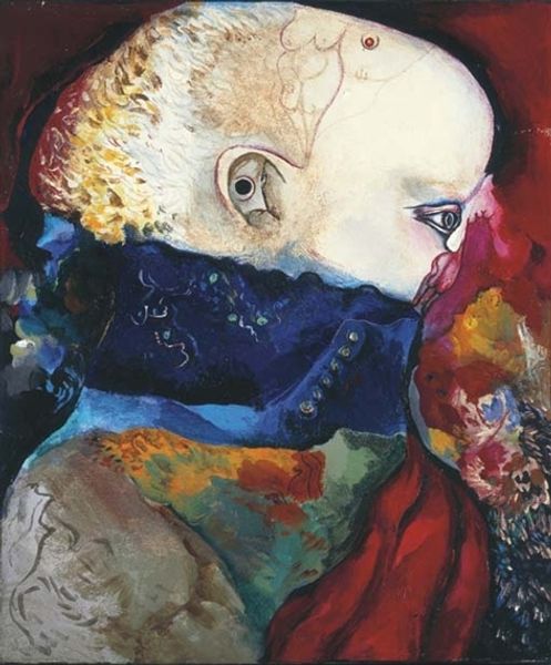 Editor: Sir Sidney Nolan's "Woman in a Hat" is quite striking. I'm immediately drawn to the contrast between the vibrant hat and the shadowed face. What cultural symbols or meanings do you find embedded within this portrait? Curator: The hat itself, adorned with flowers, acts as a complex symbol. Flowers often represent beauty and femininity, but their placement obscuring the face suggests a hidden identity or perhaps a performance of self. Do you think the artist is exploring the dichotomy between outward appearance and inner experience? Editor: That's a fascinating point! I hadn't considered the obscured face as a deliberate choice to conceal. It makes me reconsider the meaning of the flowers. Curator: The interplay of concealment and revelation is key here. It invites us to delve deeper into the psychological landscape of the sitter. I wonder what memories are hidden behind the shadow? Editor: Thank you. I see how the symbols work together to create a more complex story.