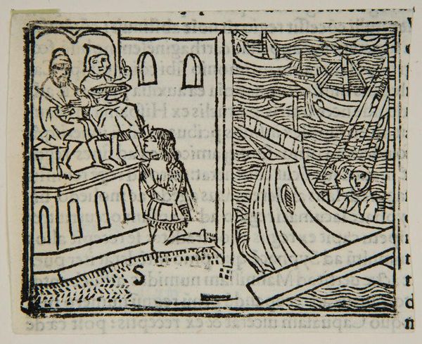 Editor: This is Book I.24, titled "Ambassadors from Alba arrive with news of war," by an anonymous artist. It looks like a woodcut. What historical context can you provide? Curator: This image, created during a time of political upheaval, depicts a moment of diplomacy tinged with the threat of violence. Consider how power dynamics are represented here. Who has agency, and who is acted upon? What narratives are being reinforced, or challenged? Editor: It's interesting to think about whose story is prioritized, even visually. Curator: Exactly. And how does this image engage with broader themes of conflict, negotiation, and cultural exchange that still resonate today? Editor: I never thought about it that way before. Thanks! Curator: My pleasure!