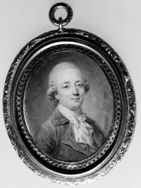 Editor: Here we have Anna Claypoole Peale’s drawing of George Washington, created sometime between 1791 and 1878, now residing at the Met. The oval composition and monochromatic palette definitely lend it a sort of serious, classical feel. What do you see in this piece? Curator: Ah, yes, Washington. He stares back at us with that famous stoicism, doesn't he? But for me, beyond the political iconography, I see Anna Peale, a woman artist carving her space in a world that wasn't exactly throwing open the doors to female portraitists. The softness of the pencil, the subtle gradations… does it strike you as more reverent or realistic? Editor: That’s interesting. I guess I hadn’t considered the artist's perspective as much. Realistic, I think. There’s a realness there that feels different from the grand oil paintings you usually see of him. Curator: Exactly! It’s like she's letting us peek behind the presidential facade. Imagine her, sitting before him, capturing not just his features, but perhaps a hint of his humanity. A whisper of the man, not just the monument. What do you make of the simplicity of the medium? Editor: I think it strips away a lot of the… I don’t know… bombast? You focus on the person rather than the pomp. Curator: Precisely! The absence of color forces us to consider the textures, the light, the very lines that define his face. It's almost meditative. I think she's asking us to look closer, to question the image we’ve inherited. And in doing so, perhaps, see a bit of ourselves. What a revolutionary idea, isn't it? Editor: That’s really beautiful, and now I’ll always think about Anna Peale when I see other portraits from that time. Thanks so much. Curator: The pleasure was all mine. Always remember, every portrait is a dialogue across centuries, an invitation to see the world, and ourselves, anew.