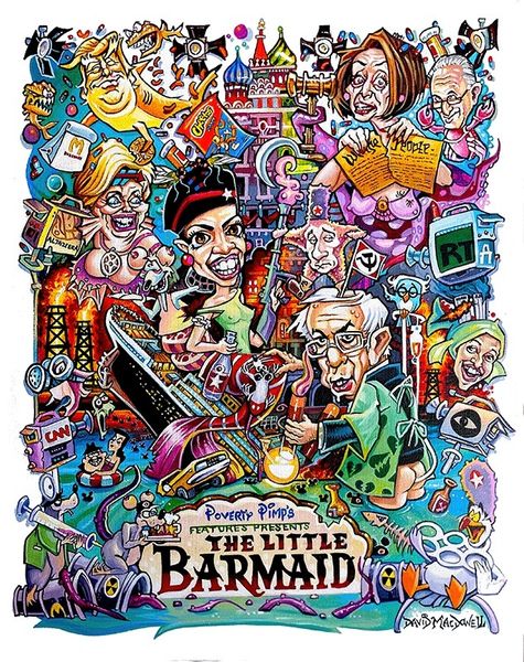 Curator: I am immediately hit by this whirlwind of imagery, its chaotic nature—a collage of recognizable, slightly unsettling icons—makes you think of those late-night, sugar-fueled cartoon binges. Editor: Right! Let's dive in. What we're looking at is a painting by Dave Macdowell entitled "Burger Thing". There's no firm date attached to the work. Painted with acrylic, the overall feeling definitely screams "pop surrealism," doesn't it? Curator: Absolutely. And it speaks to our modern experience, our anxieties around consumption, and possibly even questions our relationship to work, judging from the fast food employee character near the painting’s center. The artist plays with archetypes to give shape to something very raw and unfiltered. Editor: The employee is a compelling entry point into thinking about the art in a deeper context. This depiction highlights the labor that goes into the food industry, and also speaks volumes about the grotesque imagery employed. It seems to be a commentary on both the allure and the potential horrors of capitalist consumption, almost daring the viewer to question what they're willing to consume. Curator: I also find the humor irresistible— the dripping sauces transformed into monstrous, almost cartoonish characters with bulging eyes and fangs! There is a delicate balance being struck, isn’t it, where it is both disgusting and amusing? Editor: True, the humor is there but so is the deeper critique. This painting can be placed into a trajectory of artists using pop art to scrutinize society and consumerism, not unlike what the Surrealists attempted with the dreamscape. But the way it tackles class through those identifiable pop culture images opens up an exciting field of inquiry. Curator: I agree; this "Burger Thing" seems like an unapologetic expression of the tensions present in our everyday lives—one which encourages you to reflect on the strange realities and anxieties simmering just beneath the surface. Editor: It truly underscores the importance of questioning the power dynamics inherent in consumer culture, offering a stark perspective of how these forces mold identity and perception, perhaps one monstrous bite at a time.
