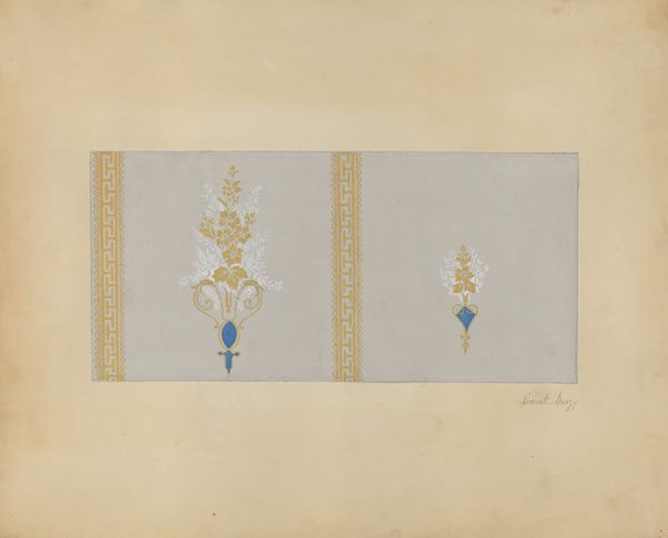 Here we see a delicate brooch design rendered on paper by William P. Shearwood, an artist born in the late 19th century. During Shearwood's time, jewelry functioned as a potent signifier of identity and social status, particularly for women. These brooches, with their intricate metalwork and vibrant amethyst stones, speak to the Victorian and Edwardian eras' fascination with ornamentation and the symbolic power of gems. Amethyst, often associated with royalty and piety, was a popular choice, reflecting the values and aspirations of the wearer. Consider the emotional weight of adornment. How might wearing such a piece shape a woman’s self-perception or project a certain image to the world? Shearwood’s design, while beautiful, also hints at the constraints placed upon women, whose identities were often closely tied to their appearance and material possessions. This design encourages us to reflect on the complex relationship between personal expression, social expectations, and the quiet language of adornment.