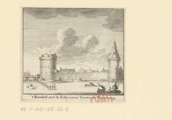 Curator: This is a delicate, detailed image attributed to Abraham Rademaker, dating sometime between 1725 and 1803, held here at the Rijksmuseum. It’s titled, "Gezicht op een deel van de stadwal te Utrecht, 1660"—a view of a section of the city wall of Utrecht. Editor: The image feels almost ghostly. There’s a faded quality that gives it an incredible sense of distance, both in time and in space. I'm also struck by how it appears to show a fortified structure being observed, watched over. Curator: Rademaker was known for his topographical drawings and prints, and his style frequently emphasized precise documentation of landscapes and urban spaces. It’s interesting how the details are carefully rendered, despite the softness of the line work. We're really given an excellent glimpse into this specific moment in Utrecht's past. Notice the way the artist captures light reflecting off the water. Editor: It certainly reflects an age where boundaries, literally walls, determined so much about the accessibility to power. We might reflect on who this fortified place was designed to protect and keep safe, and also conversely who it was built to keep *out.* The structure itself feels almost like a physical embodiment of social hierarchy, and perhaps Rademaker provides some critical observation. Curator: The walls definitely create a division and speaks to the urban development strategies in the region. I think it's less about critical reflection and more a capturing of a period. But perhaps our own positioning allows us to interpret them now through the lenses of class and safety you rightly bring to bear. And there's also a cultural memory at play here – how do walls shape the consciousness of people living within and outside of them? Editor: It’s fascinating how such a simple scene evokes those much bigger questions. A seemingly neutral depiction of a landscape still speaks volumes about its socio-political conditions and even carries forward symbolism into our present-day contexts. Thank you. Curator: Thank you.
