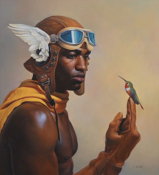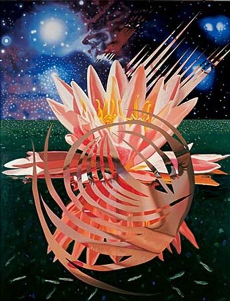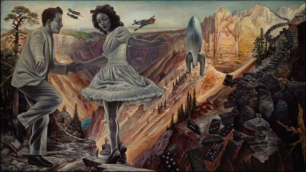 Dragan Ilić Di Vogo made this mind-bending painting, Geometrija, with oil in 1991. Right away, I’m drawn into the mystery, the way the painting pulls together a bunch of different ideas. The pyramid in the background, contrasted with the geometric shapes surrounding the central figure, it’s like the artist is inviting us to solve a visual puzzle. I love how the texture gives the piece a tactile quality. The way the paint is applied to the figure, it’s almost like it's emerging from the canvas. Then there’s this flower right on top of the head, it makes me think about growth, and how even the most solid forms can give way to something new and vibrant. It’s a bit like looking at a de Chirico, where the mundane meets the surreal. And that signature in the corner? It’s a reminder that someone, somewhere, put their heart into making this thing. Art, after all, is just a conversation across time, full of questions and no easy answers.