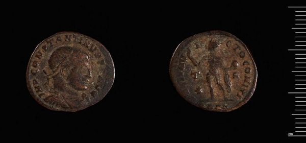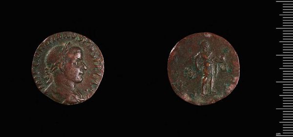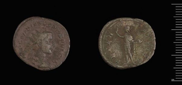 Curator: This coin, minted in Isaura, features Julia Domna, wife of Emperor Septimius Severus. It's incredible to hold something so small, yet so connected to the vastness of Roman history. Editor: It has this wonderful, weighty feel—doesn't it? Like holding a small piece of a dream. The imagery—though worn—still whispers of power and legacy. Curator: Absolutely. And the coin itself serves as a symbol. Domna, as empress, was herself a powerful symbol, representing stability and continuity within the empire. It shows how female figures were used symbolically. Editor: The corrosion only adds to that, strangely. It makes me think of the layers of history we all carry with us, like the patina on this coin. Scars and all. Curator: I find it poignant that something created to project imperial power is now so fragile, whispering stories only to those who listen closely. Editor: Yes, each of us brings our own unique interpretations, adding to the layers of meaning embedded in this object. It becomes a mirror reflecting back.