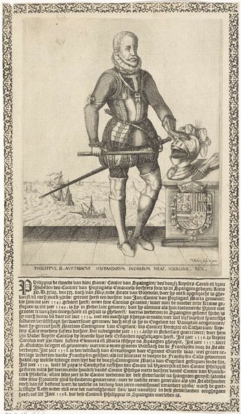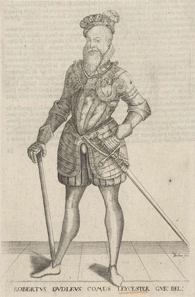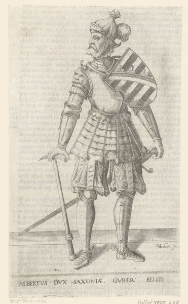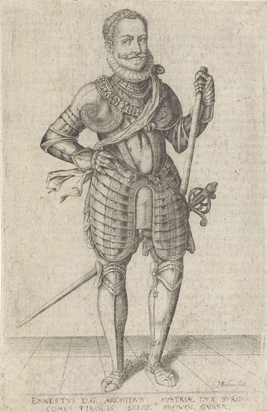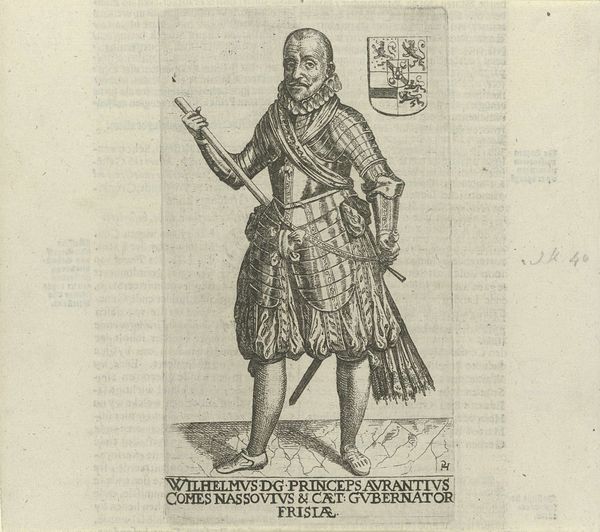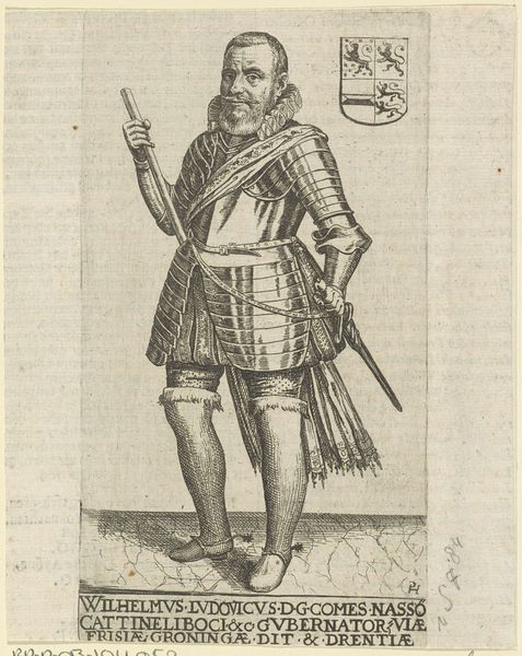 Curator: Good morning. Today, we're looking at a remarkable print held here at the Rijksmuseum: Pieter Feddes van Harlingen's 1622 "Portret van Ernst Casimir, graaf van Nassau-Dietz." It offers a fascinating glimpse into the visual culture surrounding Dutch aristocracy in the early 17th century. Editor: Well, my first thought? That’s a whole lotta metal! He looks positively encased, like an armadillo crossed with a dignitary. A bit…intense, perhaps? Curator: Indeed. Such portraiture served specific purposes. Ernst Casimir was a significant military figure, governor of Friesland. The armor emphasizes his power, status, and readiness to defend the realm. Editor: Right, it’s pure theatre, isn't it? Makes you wonder how comfortable he actually was in that get-up, all puffed up like a startled pigeon. And that little lace collar…such a contrast! Curator: Absolutely, the attire projects authority but it is worth examining in context: printed portraits disseminated ideals. Prints like these served political and social functions; consider who this was for, not only who it was of. Editor: Okay, okay, so it’s propaganda…but beautifully rendered propaganda, wouldn't you say? Look at the detail in the metal, that's light bouncing off it so deftly. And there’s a sensitive sketchiness too – the face has character. Curator: Agreed. Van Harlingen’s skill as a printmaker is undeniable. And remember, this was a time when printed images were vital for spreading information and building reputations. Portraits became powerful political tools. The heraldry above his shoulder confirms his lineage, reinforcing legitimacy and legacy. Editor: Makes you think about how we “curate” our own image now, online. Different armour, different battles, same game perhaps? Curator: A compelling point! While societal mechanics may echo across time, each generation reinvents them to fit their unique socio-political circumstances. We still use imagery strategically, crafting public personas—digital armor for the modern age, as you put it. Editor: Exactly. Ernst Casimir: a seventeenth-century influencer, perhaps? Food for thought! Curator: Indeed. It's always rewarding to see history resonating across the centuries and inviting us to consider our present with fresh eyes.