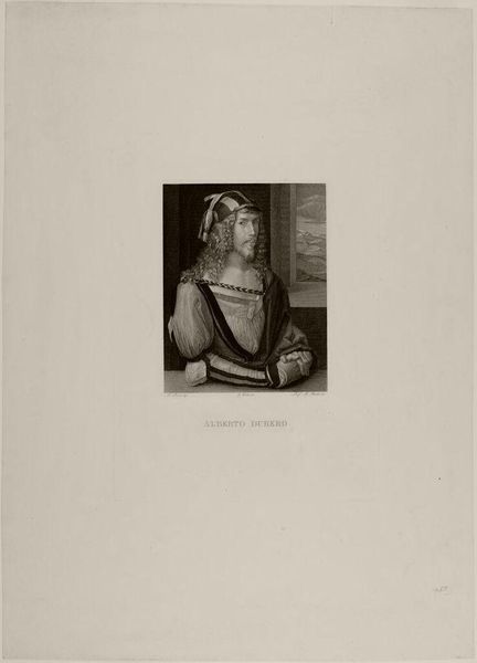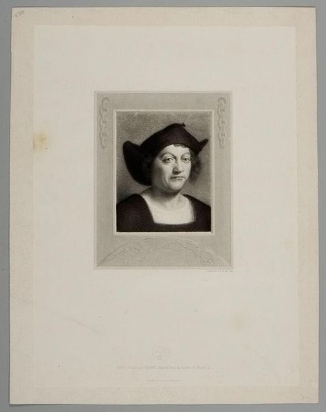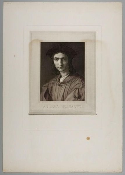 Editor: This is Johann Friedrich Müller’s engraving, "Raphael Sanzio (at the age of 23)," housed at the Harvard Art Museums. The subject's gaze is so direct! What can you tell me about the context in which this piece was made? Curator: Well, consider the cult of the artist. Reproductions like this, particularly in the 19th century, helped solidify Raphael's image as a genius. The printing press allowed for wider dissemination of his likeness, impacting perceptions and elevating his status. Editor: So it’s not just about the subject, Raphael, but also about how Müller’s print shapes our understanding of him? Curator: Exactly! Think about the institutions that collected and displayed prints like this – museums, libraries – and how they contributed to canonizing Raphael and reinforcing certain artistic values. What do you make of that? Editor: I hadn’t considered it that way; it's fascinating to think about how reproductions can influence cultural perceptions of an artist. Curator: Indeed! It makes you wonder how we continue to build up our artistic pantheon.