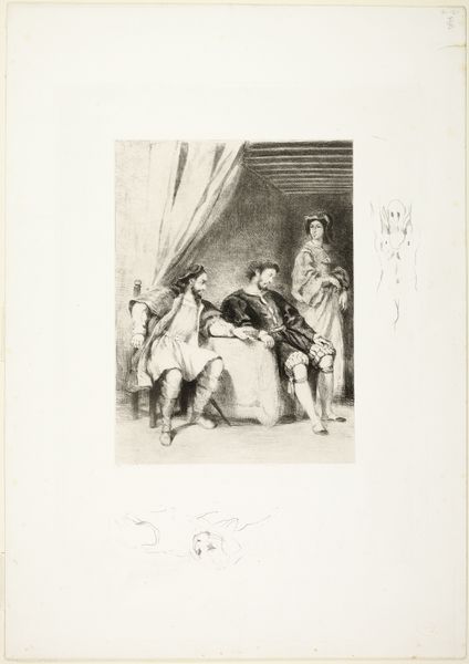 Editor: So, this is "Skandinavernes hjælpekasse i Rom," or "The Scandinavians' Relief Fund in Rome," an engraving from 1878. The print work is really detailed, capturing the clothing textures so well. What stands out to you? Curator: Well, focusing on the materials, let’s consider why an engraving, a process of making multiple reproductions, was chosen. It wasn't about creating a unique object. Instead, its strength lies in the broad distribution of this image. The “relief fund” box at the center seems to suggest anxieties around poverty and social mobility. Editor: So, you're suggesting the material choice emphasizes accessibility and distribution related to wealth? How does the context of the production relate to the subject matter? Curator: Exactly. This print isn’t just showing us a scene; it's also participating in a larger system of resource management. The “Scandinavian Relief Fund” surely served specific, probably class-based, groups of artists abroad. We see consumption meeting production, with these characters literally “paying” for their continued work in Rome. Does that shift how you see it? Editor: It really does! Thinking about how the image circulated gives it a completely different meaning, seeing it less as a record and more as an element of how resources moved through a particular community. Curator: And think about the engraver's labour itself – painstaking, precise work to produce an image meant to generate… what kind of return for that labour, exactly? It points to many different hands in this “relief.” Editor: Right, all that labor just to get a little back? Thanks, it's insightful to think about beyond the aesthetic value of this piece.