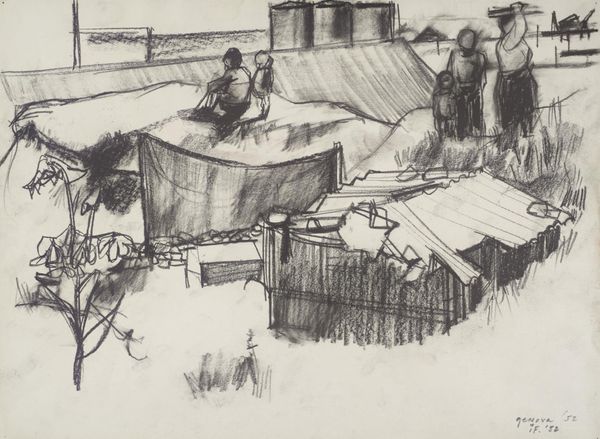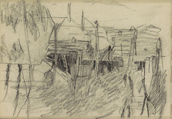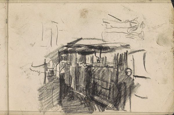 Editor: So, this is Willem Witsen's "Gebouw op palen, deels aan het water" – or, "Building on piles, partly on the water" – made with pen around 1906-1907. It’s currently housed here at the Rijksmuseum. It's really raw, almost like a snapshot from a personal sketchbook. What do you see in it? Curator: Ah, Witsen. He captures a fleeting moment, doesn't he? To me, it's like catching a half-remembered dream of a waterside dwelling. The loose penwork… it reminds me of a jazz riff – spontaneous, immediate. It's impressionistic, yes, but also intensely personal. You can almost feel him squinting against the Dutch light, trying to pin down the essence of the place before it disappears. Tell me, does that resonate with you? Editor: Absolutely. The lack of detail kind of forces you to fill in the blanks, creating your own version of the scene. It definitely feels more about capturing an impression than depicting reality. Curator: Exactly. Think about the context: late 19th, early 20th century. Artists were breaking away from rigid academic traditions, exploring subjectivity and the ephemeral. This sketch is a little rebellion in ink! The “incomplete sketchy” feel lends an accessibility too, it welcomes you into the artist’s process…makes you wonder about his state of mind as he furiously sketches! Editor: It’s cool to think of it as a visual diary entry. A glimpse into the artist’s world! Curator: Precisely. It's not about flawless execution; it's about capturing a feeling, a moment in time. And those sketchy lines? They hint at the constant flux of water, the impermanence of everything around us. It leaves you pondering, doesn’t it? Editor: It does! It’s amazing how much can be communicated with so little. I see this piece so differently now, thanks! Curator: My pleasure! Art’s about the journey, isn’t it? And sometimes, the sketchiest journeys are the most rewarding.
