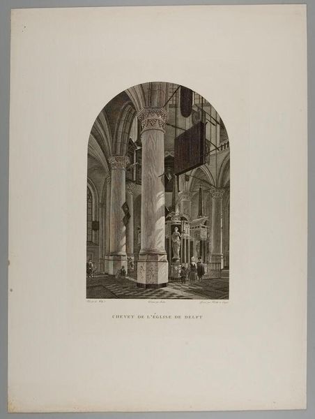 Editor: So, this is Willem van Senus' "Man by an Open Grave in a Church," placing it somewhere between 1800 and 1851. It's a drawing and print, specifically an engraving. It's giving me a distinct romantic and slightly melancholy vibe, almost like a stage set. What do you see in this piece? Curator: I see an active interrogation of production. The line work of the engraving itself points to a specific process, one of multiplication and accessibility. How does this relatively inexpensive process democratize access to these grand interior scenes? Think about who would have been commissioning and consuming images like this. Were these mass produced to illustrate gothic novels for the burgeoning middle class, feeding a specific cultural hunger? Editor: That's interesting. I hadn't thought about it in terms of accessibility and consumerism. I was focused on the image's romanticism and the lone figure by the grave. Curator: Exactly. And what about the raw materials involved? Where would Senus acquire his metal plates? The conditions in which they were crafted, the labour involved in the print-making process— all contribute to our understanding. The 'church' becomes more than just a backdrop, but a site of economic and material production, intrinsically linked to broader social conditions. Does seeing it in this light change your perspective? Editor: Definitely. It moves it beyond just a feeling to something grounded in the real world and economy of the time. It’s no longer just about the "mood" but about the conditions that created the possibility of this kind of image being made and consumed. Curator: Precisely! Considering the material processes encourages us to consider the complex web of social relationships that brought this image into being, breaking down the distinction between artistic inspiration and economic reality. Editor: I never thought about romanticism and materiality intersecting. Curator: Hopefully this inspires new modes of investigation!