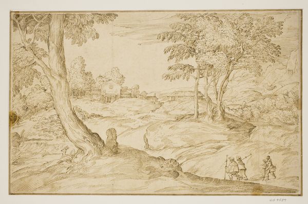 This landscape, Sydlandsk bjergegn med borg og bro over vandløb, was etched by Johanna Fosie in Denmark, around 1753. It depicts an idealized vision of nature, a staple of the era. Looking closely, we see a confluence of visual codes and cultural references. The scene isn’t a literal transcription of the Danish countryside, but rather an imaginative reconstruction, likely inspired by Southern European motifs popular among the Danish elite. This fantastical, 'southern' landscape catered to a taste shaped by exposure to continental art and literature. Consider the social conditions that shaped this artistic production. Fosie, as a woman artist in 18th-century Denmark, navigated a male-dominated art world, likely finding patronage within court circles. Landscapes like these affirmed the patrons' cosmopolitan outlook, and their adherence to the social norms of the time. To fully appreciate this etching, archival research into Danish art academies and the patronage system is invaluable. Art, after all, is contingent on its social and institutional context.