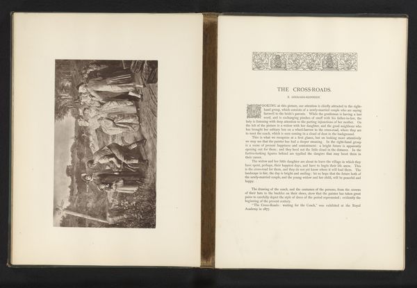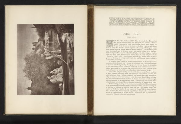 This reproduction of Charles Edouard Delort's painting 'In Ambush' is printed on a page from a book. The original was undoubtedly made using the traditional fine art material of oil paint. But this iteration is mass-produced using industrial printing techniques, which democratize art consumption. The choice of materials and production method here influences its appearance, with the fine details of the original painting being translated into a more readily available format. The book form is interesting, turning an artwork into a commodity. Think about the labor involved in both the painting and the book production: from the artist's hand to the factory worker operating the printing press. This contrast underscores how art can be both a product of individual skill and mass production, reflecting broader shifts in society and consumption. Appreciating the materials and making involved gives us a richer understanding of the artwork's role in its time.