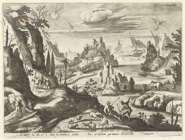 This print, “God Promises Abraham a Son,” was made by Cornelis Bos around the mid-16th century, using the technique of engraving. Engraving is an intaglio process, meaning that the image is incised into a metal plate, in this case copper. The artist would have used a tool called a burin to cut lines into the surface, creating grooves that hold ink. The plate is then inked, wiped clean, and pressed onto paper, transferring the image. Bos was a prolific printmaker, and this particular piece shows his mastery of the medium. Notice the fine, precise lines that create a sense of depth and texture. The material qualities of the copper plate allowed for detailed work, while the printing process enabled the wide distribution of images, making art more accessible in society. This print exemplifies the intersection of skilled craft and the burgeoning print industry of the Renaissance, impacting the dissemination of ideas and visual culture.