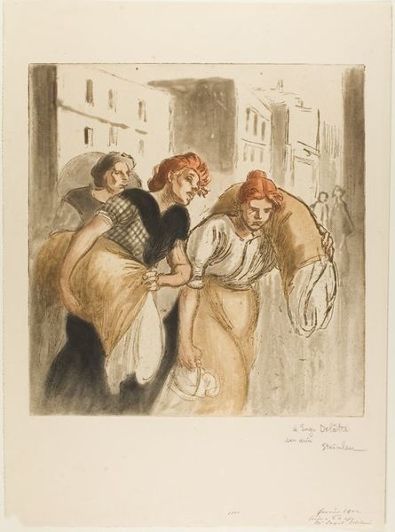 Théophile Alexandre Steinlen made this print, "Le retour du lavoir," meaning "return from the washhouse," in France, sometime between 1880 and 1920. It shows three working-class women carrying heavy loads of laundry back from a communal washing facility. Images like this are revealing of the social conditions of the time. The women's weary postures and the weight they carry speak to the back-breaking labor that defined their lives. The buildings in the background are reminiscent of the urban environment in which Steinlen operated. We might consider the print's status as a multiple, an image designed for wide distribution. How does it relate to contemporaneous political movements such as socialism and anarchism? Visual culture is always historically contingent, so scholars might look at period sources like newspapers, pamphlets, or even police records to get a better grasp of the artist's visual world.