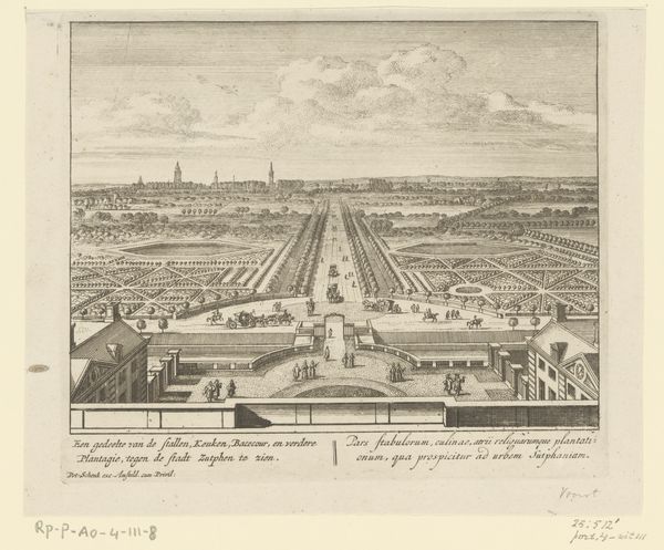 This print, made by Hendrik de Leth, gives us a bird’s-eye view of Huis ter Meer, a grand estate near Maarssen. The image is rendered through engraving, a process that involves meticulously cutting lines into a metal plate, which is then inked and printed. Engraving was a highly skilled and labor-intensive practice. Its prevalence in the 18th century was closely tied to the rise of print culture and the demand for detailed visual representations of landscapes and properties. The sharp, precise lines achievable through engraving allowed for the depiction of Huis ter Meer's elaborate gardens, architecture, and surrounding landscape, showcasing the owner’s wealth and status. Such prints served not only as aesthetic objects but also as symbols of power and control over the land. The medium of engraving, with its capacity for detail and precision, thus becomes a tool for celebrating and reinforcing social hierarchies. By examining the materials and making of this print, we gain insight into the cultural values and economic structures of the time.