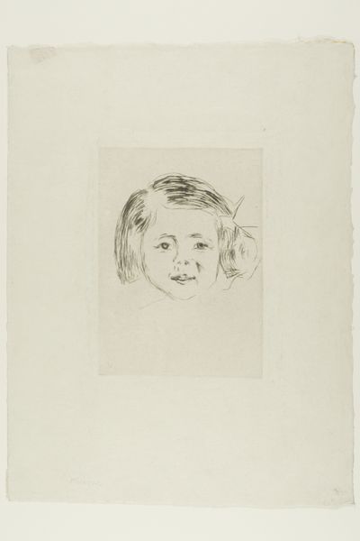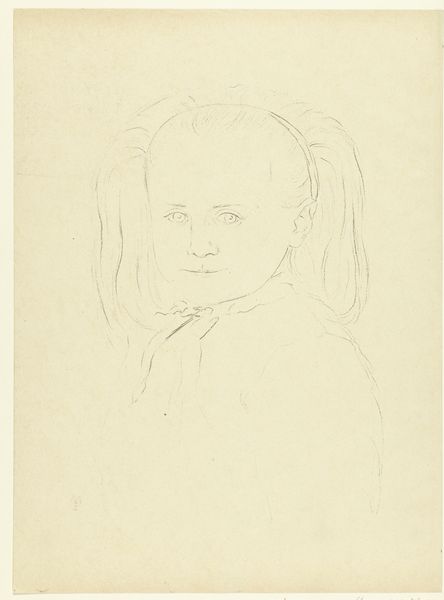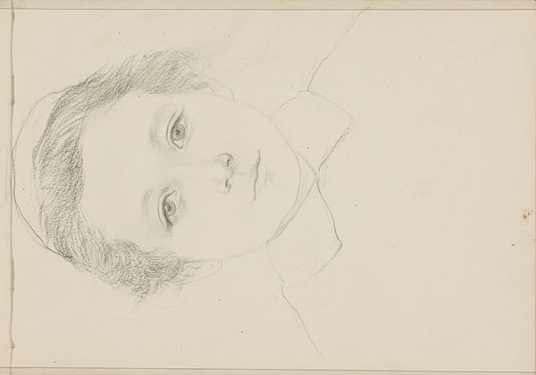 Curator: Jozef Israëls, known for his deeply felt depictions of working-class life, sketched this “Portrait of a Girl” sometime between 1885 and 1911. The piece is pencil on paper. Editor: A fragile little ghost looking up, with wisps of hair escaping the page. It has the melancholy of charcoal sketches, doesn't it? Even though it is just a humble pencil drawing. Curator: Humble in materials perhaps, but rich in process. Look closely: Israëls uses the pencil to create incredible depth and emotion, a trademark found also within his oil paintings. We should be careful not to romanticize his drawing though, Israëls came from humble means himself and perhaps even considered art materials as too frivolous early in his own artistic journey. Editor: You’re right, there’s definitely a practiced hand at play. The paper shows marks, and adjustments… you can feel him thinking about the girl's inner life as he adds strokes. Curator: Precisely! Israëls belonged to The Hague School, which championed realism and capturing the everyday. While there are arguments the Dutch Masters invented art and then The Hague school invented everyday life! Editor: He definitely gets a sense of that, though it goes beyond strict realism for me. There’s almost a spiritual yearning, like the girl is looking for something… or someone. Is that too sentimental? Curator: Sentimentality in art is a concept of context and distribution more than in creation. If Israëls believed sentiment enhanced meaning, so be it. The Rijksmuseum provides an open source file for every painting precisely for this reason. One can purchase and interpret how one see's fit, provided you respect Israëls copyright! Editor: True, art democratized…or something approaching it. Still, something about that look… like she’s caught between worlds. That makes the piece so intriguing! Curator: Indeed, Israëls’s capacity to transmute humble materials to evoke potent responses makes his body of art so vital. It reminds us about the historical value found in our social reality. Editor: And me, that art continues to work its strange magic!