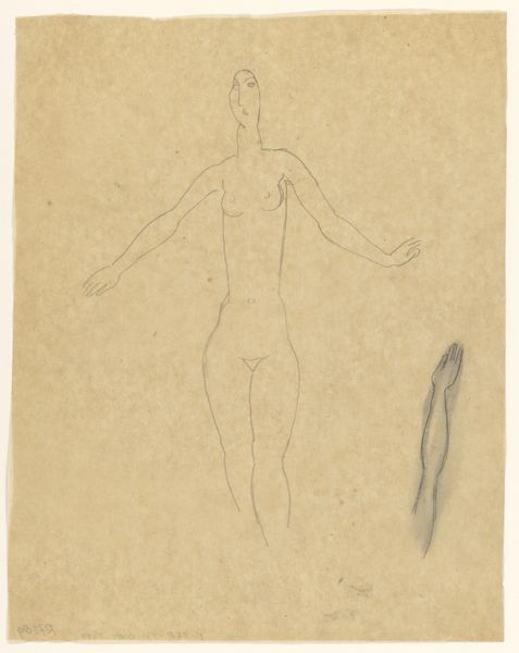 Gudrun Traustedt made this drawing, Stående model, dreng, set fra ryggen, with pencil on paper. I love how Traustedt uses simple, repetitive marks to build up the form, the way she lets the lines hover and suggest rather than define. It’s like she's feeling her way around the body, searching for its essence rather than trying to capture a perfect likeness. The texture of the paper shows through, becoming part of the drawing itself, a reminder of the physical act of making art. Look at how the lines vary in pressure and direction, creating a sense of depth and movement. There’s a vulnerability in the way the figure is presented, a sense of honesty and openness. It reminds me a bit of some of Egon Schiele's drawings, in the way it captures a raw, unidealized view of the human body. And just like Schiele, Traustedt invites us to see beauty in imperfection, to appreciate the unique qualities of each individual form. Art's not about perfection, it’s about exploring, questioning, and finding new ways of seeing the world.
