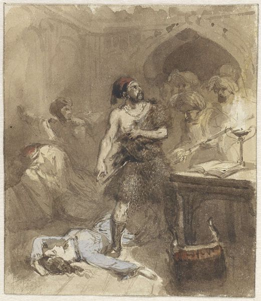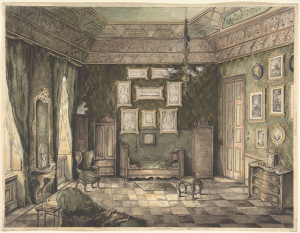 David Roberts created 'Zoldervertrek, ingericht als atelier' using watercolor, a medium known for its portability and immediacy. But why choose to depict a scene so laden with history and perhaps even melancholy? The artist uses the fluidity of watercolor to evoke a sense of decay and transience. Look at how the pigment pools and bleeds, suggesting the dust and shadows of an attic space. The sword, shield, and armour, rendered with delicate washes, speak to a bygone era of craftsmanship and warfare, now relegated to a forgotten corner. Roberts was an elected member of the Royal Academy, and well-versed in the visual rhetorics of fine art, but also a commercial artist sensitive to the tastes of a growing middle class. It is reasonable to assume that this image appealed to those interested in the process of art, with a desire for connection to the past, and the labor that brought culture into being. Paying attention to the materials and their manipulation allows us to appreciate Roberts' skill, and the complex social context in which he was working.