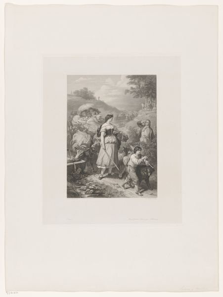 Daniel Nikolaus Chodowiecki made this print, "Het genie vindt de waanzinnige Julie onder een boom langs de weg", in the 18th century. The image depicts a woman, Julie, who appears to be in distress, sitting under a tree. A man, presumably the "genius" of the title, stands nearby, observing her. This work offers insight into the cultural and social attitudes toward mental illness during the Enlightenment. Made in the late 1700's, probably in Germany, this engraving raises questions about the role of reason versus emotion, with the "genius" representing rational observation and Julie embodying irrationality or madness. The setting, a roadside tree, suggests a liminal space between civilization and the wild. It's important to consider how institutions of the time, like asylums, shaped perceptions of mental health. To fully understand Chodowiecki's print, one might research the medical and social views on mental illness in 18th-century Europe.