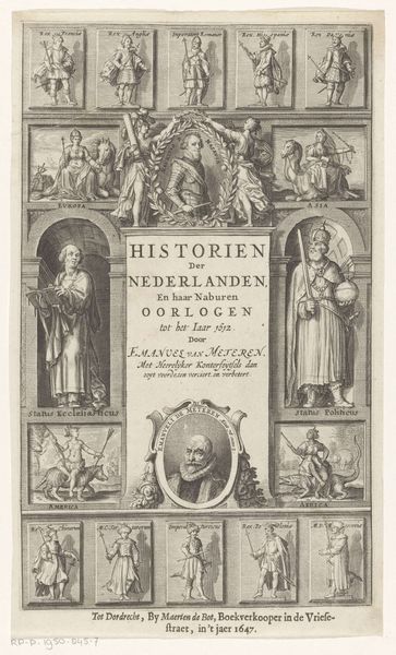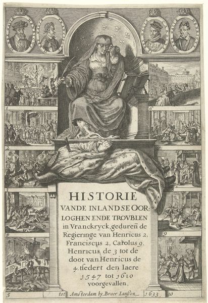 Curator: Here we have "Zeven Vrije Kunsten," or "Seven Liberal Arts," a print made around 1725 by Pieter Serwouters. It's an engraving on paper. Editor: The feeling I get immediately is... studious, almost monastic. It's tightly packed and filled with figures, but also has this airy lightness, thanks to those chubby little cherubs hovering above. Does it depict a specific educational setting? Curator: Not necessarily a particular school, but more the allegorical representation of various academic disciplines. Serwouters highlights rhetoric, music, arithmetic, geometry, astronomy, dialectic and grammar – cornerstones of early modern education. Notice how each figure embodies the essence of their respective discipline through various props and gestures. Editor: The Baroque flair is undeniable! The swirling lines, the theatrical poses... It feels more staged than truly learned, if that makes sense? Like the idea of education, idealized, rather than its lived reality. Was art seen as an essential discipline as well, then? I'm curious since it seems omitted. Curator: Well, you've hit on something. There's a bit of an ongoing debate, particularly then. Was artistic practice "art" in the way that, say, grammar was? It existed in that uncomfortable, liminal space. You're right to sense that tension – or the absence of visual art being elevated alongside the "sciences". This piece does provide a visual reflection on where it exists socially. Editor: This work has nudged me to think differently today; not just about historical ideals surrounding education and the placement of art’s status within those constructs, but more generally on learning today: whom it’s intended for, the value systems behind learning... Curator: I'm also struck by the enduring quality of the artistic representation, though of a potentially flawed concept. Despite shifts in pedagogical practices, these archetypes – and the underlying societal tensions around art – continue to spark debate and self-reflection.