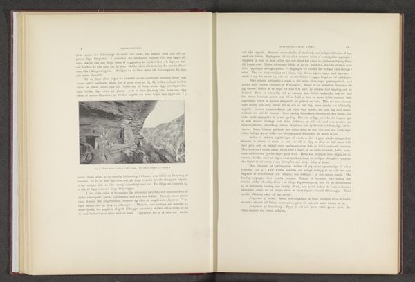 Gustaf Nordenskiöld made this print of the Long House interior at Mesa Verde around the late 19th century using a photogravure technique. This process relies on etching a photographic image onto a metal plate, then using it to create prints. The material quality of the print itself—the way the ink sits on the page, the subtle gradations of tone—gives the image a particular feel. Think of the amount of labor involved: setting up the camera, developing the film, preparing the plate, and finally, printing the image. It's a process far removed from our digital age of instant photography. But consider the image itself. The ancient architecture of the Long House represents human labor, of a different kind, that has been undertaken for centuries before Nordenskiöld created this image. It’s this combination of labor, ancient and modern, that gives the print its enduring power, reminding us of the layers of time and human effort embedded in every object and image.