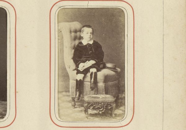 Editor: This is a photo, dating sometime between 1864 and 1886, titled "Portret van een man met een hoge hoed in de hand," by Wilhelm Frederick Antonius Delboy. It has a quiet sort of dignity to it. I'm curious—what stands out to you about it? Curator: For me, it’s about the hat. This isn’t just a portrait; it's an engagement with materials, labor, and even class. Look at the hat he holds—likely a beaver felt top hat. That screams aspirational status, reflecting not only wealth but the complex colonial networks needed to procure the materials. Editor: I see what you mean! How it speaks to more than just an individual? Curator: Exactly. Photography itself was still a relatively new technology. So who had access? Who could afford the sitting, the developed plates? This portrait marks a very specific social moment of technology and capital coming together. Consider the backdrop, the ornate chair. What is being performed through such items? Editor: So you're seeing how it almost highlights access to certain things? Not only through posing and lighting, but what those specific materials represented at the time? Curator: Precisely. What appears like simple documentation is deeply embedded with economic and historical threads. Think about the labor involved, the extraction of raw materials, the craftsmanship… these portraits encapsulate more than just a likeness. They capture entire economic systems at play. Editor: That makes me consider it on a totally different level. I guess it's easy to see it just as a picture, but it shows so much more if you dig into it. Thank you! Curator: It goes beyond just 'seeing' the artwork to recognizing and investigating the layers embedded in the tangible existence of its material conditions.