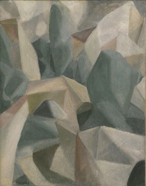 Curator: Let’s take a closer look at this untitled painting by Albert Gleizes. He's well-known for his involvement with the Cubist movement, so you see some elements of geometric landscapes. Editor: My first thought? It feels… fractured. But also strangely comforting. Like looking at a dream of a familiar place through a kaleidoscope. Curator: Absolutely. Cubism was really trying to break down how we perceive the world. This piece is less about representation and more about presenting multiple viewpoints simultaneously. Gleizes, alongside artists like Picasso and Braque, sought to liberate painting from traditional perspective. Editor: Liberate is a strong word! I see it. The way he's flattened the space, the little hints of houses, trees, a possible boat in the distance—it’s like all these moments are layered on top of each other. Curator: And those overlapping planes really highlight the formal concerns of the painting—shape, line, and color become paramount. Gleizes’s commitment to geometric abstraction shows here. It is an interesting painting considering modernism, and landscapes' place within art's broader socio-political framework. Editor: Mmm, I guess I tend to respond more to the gut feeling it evokes, versus its history. It's got a gentle energy to it. It invites me in. There's a peacefulness. All the lines lead somewhere, like he's building paths. Curator: Gleizes, and others in his artistic circle, very much saw cubism as being analytical, rather than some emotional endeavor. How form itself shapes experience was key. They were trying to move painting beyond its historical association with pure mimesis. Editor: Perhaps. But you can't control how people will react, or rather feel about it. In the end, for me it evokes longing... distant and peaceful, you know? Curator: Yes, I see how a contemporary viewer might arrive at that emotive experience, which can open it to newer, more relevant cultural discussions, about belonging and place. Editor: Exactly! Who knew dissecting a landscape could lead us to a place of feelings?