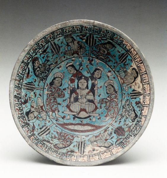 This ceramic bowl, decorated by Abu Zayd al-Kashani, likely dates back to the late 12th or early 13th century, a period when Persia, now Iran, was undergoing significant cultural and political changes. The scene depicted is a "Majlis," a social gathering, possibly an aristocratic party by a pond. It offers a glimpse into the cultural life of the elites, while the presence of female figures, some unveiled, invites contemplation on gender roles and social norms. The style and technique of the artwork reflect the historical context of the medieval Islamic world, where art was influenced by a blend of Persian, Arab, and Central Asian traditions. Calligraphy also encircles the rim of the bowl, reflecting the reverence for the written word in Islamic culture. The bowl not only serves as a functional object but also as a record of social practices and artistic expression, offering insights into the intimate and public life of the era. It invites us to reflect on the universal themes of community, identity, and artistic expression across different cultures and periods.