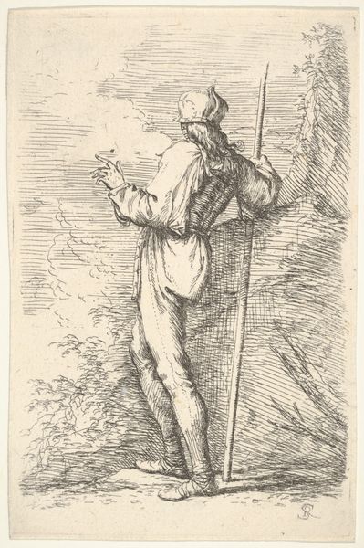 Soldier with a Staff Standing Next to a Large Rock by Salvator Rosa