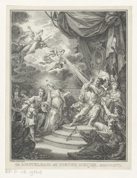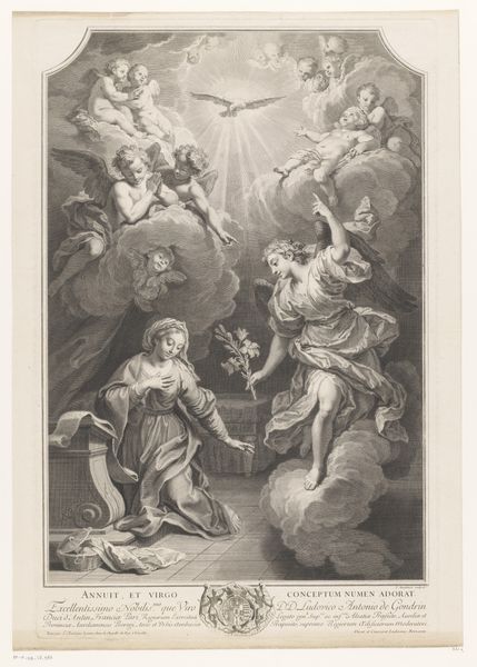 Georg Friedrich Schmidt created this print of Louise Albertine von Grapendorf, and we see her portrait surrounded by wreaths of flowers held aloft by winged figures. These are no mere decorations; wreaths and garlands, from antiquity to the Renaissance, symbolize honor, virtue, and cyclical renewal. Consider the putti, those cherubic figures that populate the scene. Their roots lie in ancient Roman art, where they represented Cupid or Eros, the god of love. Over time, the putto evolved, often appearing in religious contexts as representations of innocence and divine love. Here, they frame the portrait, suggesting a divine appreciation for Louise Albertine. Think of Botticelli's "Primavera," where Flora scatters blossoms, or Titian's "Venus," adorned with myrtle—each evoking the beauty of the natural world. This portrait, too, connects to a primal desire for beauty and connection with nature, tapping into an emotive, almost subconscious, recognition of life's cyclical patterns. The image conveys a psychological longing, a deep-seated desire for renewal and recognition. This yearning resonates across centuries, reminding us that, despite time, our collective memory shapes how we perceive and immortalize beauty.