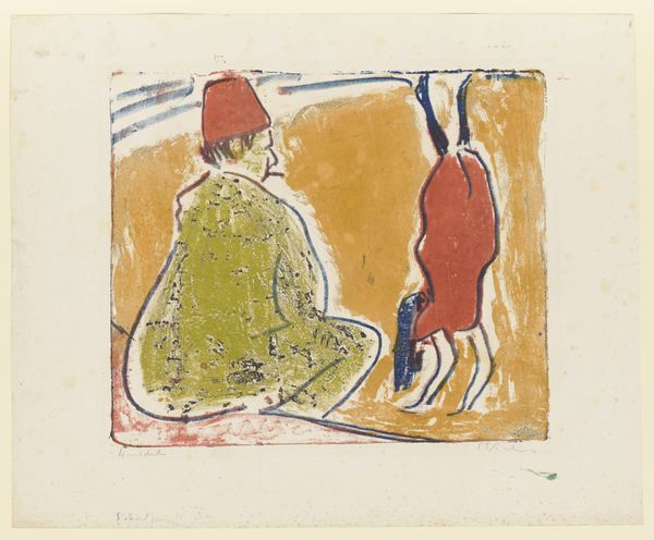 John Elsas made this paper collage, titled "16563," but we don't know exactly when. What strikes me is how Elsas builds this simple scene with just paper, scissors, and glue. It’s all about shape and color and a kind of raw construction. Look at the man's tunic, a patchwork of blues, greens, and yellows – like little bursts of emotion. And the woman’s dress, grounded with those earthy browns, but then those wild, vibrant flowers popping out! The contrast is so visually arresting. It’s like Elsas is saying something about the push and pull between our inner lives and how we present ourselves to the world. I wonder what he was thinking when he chose to add that text at the bottom of the image. This piece reminds me a bit of the early cut-outs by Matisse, that same sense of joy and playfulness with form and color. Both artists show us that art isn’t about perfection, it’s about feeling and expression, and embracing the beauty of imperfection.