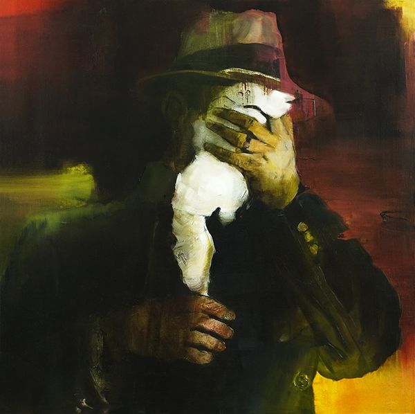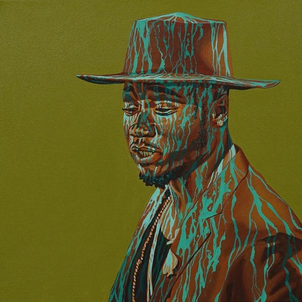 Dan Graziano created this painting of jazz musician Thelonious Monk, who is primarily rendered in black and dark purple, against a vivid orange backdrop. Monk's serene upward gaze draws us into the composition, inviting reflection on the narratives woven into this piece. Monk was a crucial figure in the development of bebop and modern jazz. His compositions and improvisational style were known for their dissonance and rhythmic complexity. Jazz provided a crucial space for Black artists to express their creativity and challenge racial barriers during the mid-20th century, so Monk's music embodies a powerful form of cultural expression and resistance. Graziano's choice to render Monk in such deep, dark hues against a bright background evokes the emotional depth and complexity of Monk's music. The use of color and light not only captures Monk's likeness but also seems to amplify the soulful energy that defined his career.