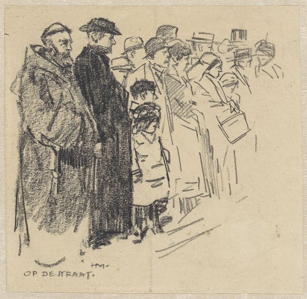 Curator: The gelatin-silver print we're observing is titled "People around a brazier," thought to be taken sometime between 1933 and 1940 by an anonymous artist. Editor: It’s got a smoky, somber air, doesn’t it? The faces gathered around the light, hands outstretched, look cold or maybe hopeful, almost prayerful in a way. The photograph feels both immediate and timeless to me, it’s beautiful! Curator: Let's unpack some of that. Considering the economic conditions of the 1930s and the impending global conflict during that decade, these braziers would've represented more than mere warmth; they symbolize shared resources, communal resilience amidst scarcity and also it represented public celebration of Queen Wilhelmina birthday. Notice the subjects’ diverse attire, suggesting a mix of social classes coming together in a moment of collective vulnerability. Editor: You're so right, they're wrapped up in many coats! Vulnerable is the word I was searching for! The artist frames everyone with such stark honesty. You can almost smell the smoke, feel the biting air of night touching your cheeks. The photograph transcends documentation, doesn’t it? The fire in the frame brings everyone closer! It feels sacred almost. Curator: Exactly, but that ‘sacredness’ might also be tied to socio-political undertones. Collective warmth as resistance? I am intrigued. How they gather! It highlights human relationships which can’t be taken away, they stand strong against economic turmoil in solidarity through this event. I'd love to learn more about materials used at the event, their potential supply chain, labor practices, and cost for Dutch communities. It appears they made and maintained some items which allowed people to partake meaningfully! Editor: Yes! Perhaps that collective creation becomes its own narrative of social solidarity. A single image carrying so many stories! The way this photo captures not only an event but the underlying unity. Curator: Precisely. "People around a brazier," even without a known author, sparks critical and emotional consideration about what binds society in hardship and triumph. It seems to question the individual in a collective and a collective in an individual at the same time! Editor: It’s fascinating to realize that sometimes a found moment is enough for art, and sometimes that small glow lights up greater questions than one might’ve ever imagined. I want to step inside the photograph, sip something hot, and stay near the brazier.