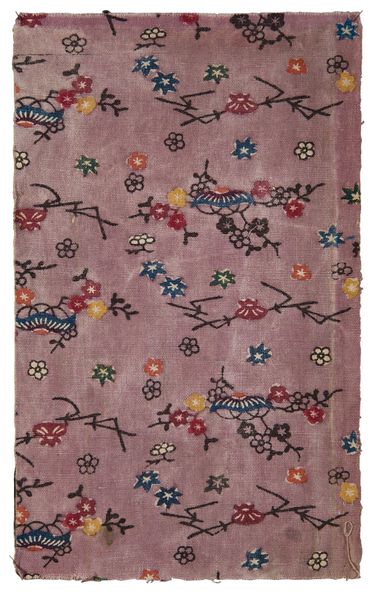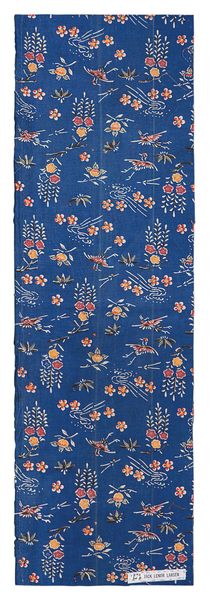 This textile, now at the Metropolitan Museum of Art, features an overall floral and dot pattern on a blue background. The immediate visual impression is one of dense, all-over design, where the blue ground speckled with white dots serves as a unifying field for the meandering floral motifs. The composition lacks a central focus, instead, inviting the eye to wander across its surface. The artist's technique suggests a focus on repetition and surface ornamentation, rather than depth or perspective. The tension between the regularity of the dotted background and the organic forms of the flowers creates a dynamic visual interplay. This engagement with pattern and surface reflects a broader artistic and philosophical interest in challenging fixed meanings, where the artwork doesn't aim to represent reality but to create its own visual logic and system of signs. This piece functions as a cultural artifact, opening pathways for ongoing interpretation.