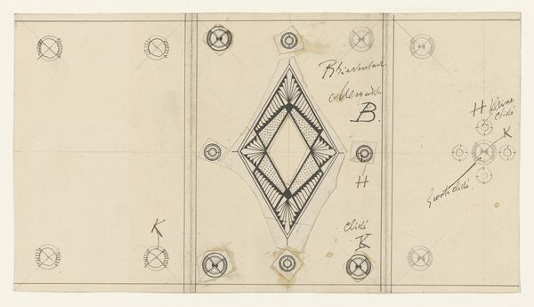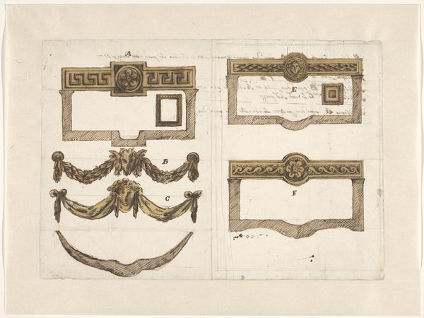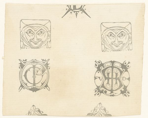 Editor: This work, "Ontwerpen voor monogrammen, initialen O en I en vignet met monogram WS," roughly translated to "Designs for monograms, initials O and I, and vignette with monogram WS," was created by Reinier Willem Petrus de Vries between 1901 and 1906, and consists of pen and ink drawings. What jumps out to me is the combination of hard geometric lines with flowing, organic forms. How do you read these letterforms? Curator: I see a fascinating dance between tradition and modernity, reflecting the Art Nouveau period’s fascination with nature and its integration with industrial design. The very act of creating monograms—the intertwining of individual identities into a singular symbol—speaks to a desire for connection, perhaps even legacy. Notice how each letter isn’t merely functional, but an elaborate tapestry of visual meaning. What feelings do the letter "O" or the interlocked initials evoke? Editor: I find the O's circular shape quite grounding, while the entwined letters suggest partnership or even secrecy. Is it meant to signify the relationship between individuals, maybe familial ties, or perhaps just two entities coming together? Curator: Precisely! Consider the historical context. Monograms were often used to signify status, ownership, and artistic affiliation. This artwork encapsulates how symbols distill cultural values and identity into visual language. These weren’t simply decorative; they represented an enduring human need to mark, to belong, to communicate beyond the spoken word. Look at the use of floral motifs integrated within geometric boundaries. Where do you see this interplay mirrored in other art forms? Editor: Now I see Art Nouveau references everywhere in architecture, and even in graphic novels! This piece makes me consider how artists interpret and reinvent old symbols in new cultural settings. I hadn’t really appreciated the meaning of monograms beyond simple decoration before. Curator: And that's the essence of understanding iconography—to realize that every line, curve, and choice carries a story, whispering echoes from the past into the present. It all connects.