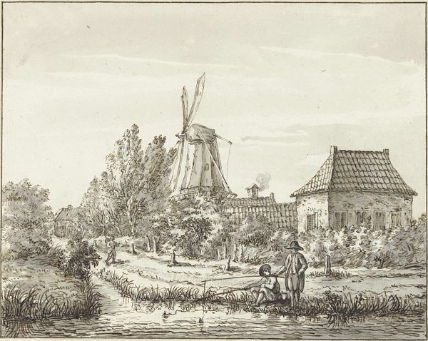 Gerrit Lamberts made this watercolor and pen drawing of Haarlem, showing two boys flying a kite, using paper as a readily available, and relatively inexpensive ground. The drawing captures a serene moment in the Dutch countryside, made all the more evocative by Lamberts' skillful use of monochrome washes. The subtle gradations of tone create depth and atmosphere, emphasizing the textures of the landscape. Look closely, and you can see the paper's texture coming through. It wasn't an expensive sheet, and the goal here wasn't to create a slick illusion, but to capture a place and time. It's worth noting that while Lamberts was a trained artist, the techniques he employed here were accessible to many. Drawing was a common skill, and watercolor painting a popular pastime. So, this work reflects a broader culture of making and looking, one that valued both artistic skill and everyday experience. This piece is an excellent reminder that art isn't just about grand gestures, but can also be found in the quiet observation of ordinary life.