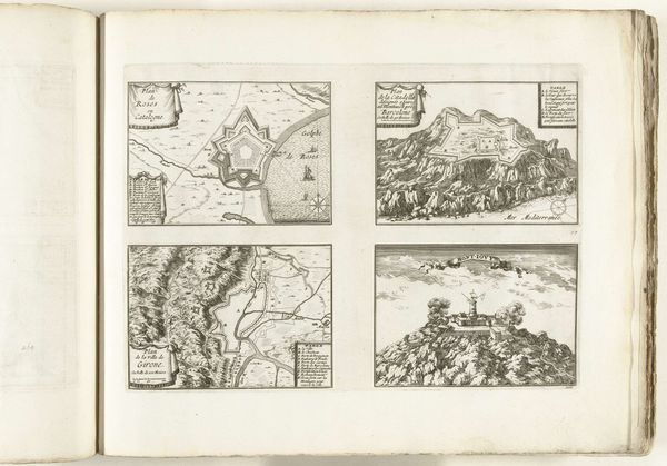 This is an anonymous print from around 1702, depicting maps of Lérida, Tarragona, and other Catalan locations. Here, the depiction of fortifications isn't merely about geographical accuracy; it speaks to a deep-seated human desire for protection and dominion. Notice how the walls and citadels dominate each scene, evoking the power and vulnerability inherent in human settlements. One cannot help but recall the ancient city-states of Mesopotamia, also defined by their protective walls, or even the symbolic walls of monasteries and sacred spaces designed to ward off external threats. Consider, for instance, the recurring motif of the walled city. Throughout history, from Jericho to medieval Carcassonne, walls symbolize not only physical defense but also cultural identity and psychological security. The act of mapping itself is a symbolic gesture—an attempt to impose order on the chaos of the world. The psychological impact of such imagery is profound. These aren't just maps; they're embodiments of our collective anxieties and aspirations, resonating with the timeless human quest for safety and control. The symbols present transcend their immediate context, revealing the enduring power of human cultural memory.