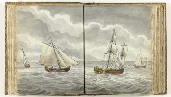 Editor: So, here we have J. Weuyster's "The Sailing of the Dutch Fleet from Texel (19 July 1781)," made in 1783, a drawing with coloured pencil and watercolour that appears to depict a fleet of ships leaving port. It has such a calm, collected feeling to it, like a moment of stoic preparedness. What do you see in this piece, from your perspective? Curator: I see more than just ships sailing; I see the projection of Dutch power and mercantile ambition in a very specific historical context. This work places itself within the Fourth Anglo-Dutch War. It asks us to think about what the image is trying to obscure. Editor: Obscure? How so? Curator: Well, this is presented as this glorious moment, but we should consider it as part of a struggle for global dominance. It's also important to acknowledge the very real human cost, right? The forced labor that extracted the raw materials, and the exploitation inherent in colonial trade routes are rendered invisible, idealized as opposed to critically examined. How does this change your perception? Editor: It makes me think about what's not being shown – the human lives impacted by this projection of power. All the expense and all the raw materials... were these boats slave ships or part of that supply chain? Curator: Precisely. The piece reflects and reinforces certain ideologies tied to nationalism, mercantilism, and colonialism, encouraging us to celebrate the Dutch fleet uncritically. Editor: So by looking at the historical context and social impacts, we can start to unpack what the piece is really about, instead of taking its beauty at face value? Curator: Exactly. Considering the broader narrative allows us to engage critically with the art and understand its role in shaping perceptions. Editor: That's a powerful way to view it; I hadn't thought of it that way at all. Thank you!