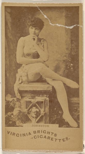 This is a promotional card for Cross Cut Cigarettes, made by W. Duke, Sons & Co. in the late 19th century. The photographic image, printed on card stock, depicts the actress Hattie Robins, posed seductively amidst faux foliage. Mass production is at the very heart of this object; this card was one of many made to be included in cigarette packs. Photography allowed for the relatively quick creation of the image, while industrial printing enabled its distribution on a massive scale. This all speaks to the growing power of consumer culture at the time, where even art was being used to fuel sales. But consider the amount of labor involved, from the photographers, to the printing press operators, to the low-wage factory workers who assembled the cigarette packs. This card isn't just about selling cigarettes; it's a glimpse into the complex social and economic forces that shaped the late 19th century. It’s a reminder that art and commerce have always been intertwined, and that even seemingly trivial objects can tell us a great deal about the world in which they were made.