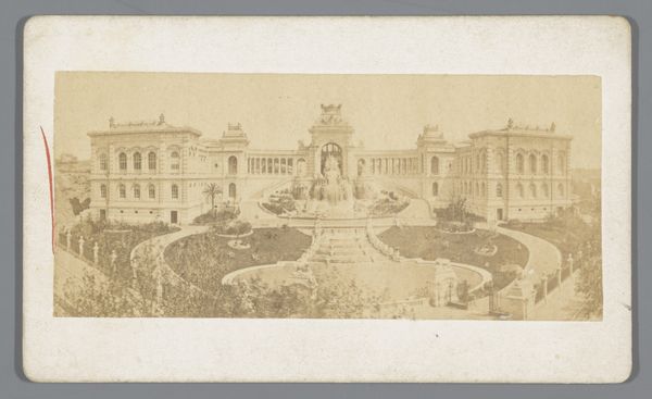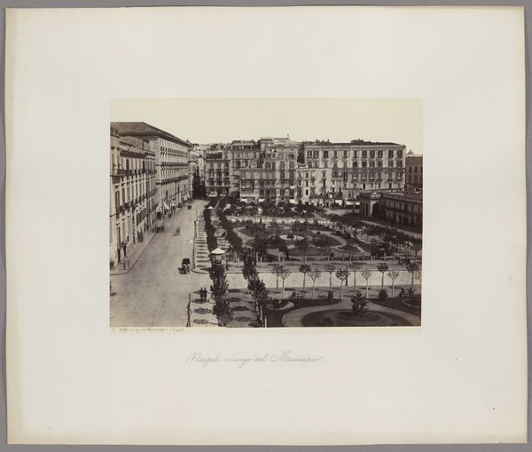 This photograph captures the Piazza del Plebiscito in Naples, featuring the Largo Palazzo and Sant'Elmo castle, through the lens of Giorgio Sommer. Notice the equestrian statues that stand prominently in the square, which have ancient roots. These figures evoke the Roman tradition of celebrating emperors and generals on horseback, symbols of power and authority. We can see how these statues connect to the Marcus Aurelius statue in Rome, yet while the Roman example embodies philosophical leadership, these later versions lean towards military might. The statues engage our collective memory, recalling the symbolic weight of leadership. The colonnades here create a stage for public life, recalling the stoa of ancient Greece, yet here, they serve as a backdrop for royal display. The overall composition invites us to reflect on the cyclical nature of power and the enduring human need for symbols of authority.