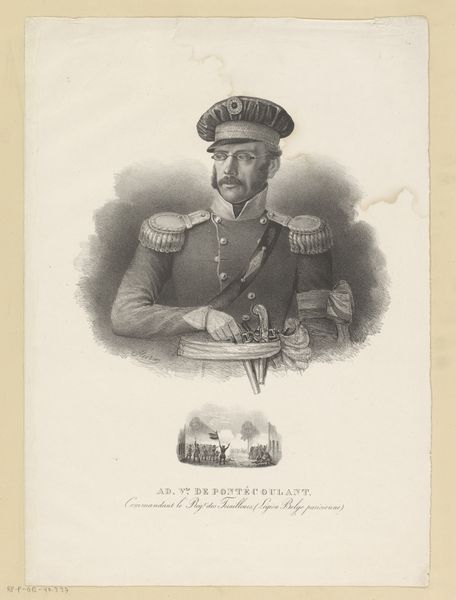 Johan Hendrik Hoffmeister created this lithograph portrait of Andreas Victor Michiels. Lithography, a printing process using a stone or metal plate with a smooth surface, offers a fascinating lens through which to consider the portrait. The process involves drawing on the stone with a greasy substance, applying ink that adheres to the drawing, and then transferring the image to paper. Think about the labor and the chain of production involved. From quarrying the limestone, to its preparation and the skilled hand of the artist, each stage required expertise and time. The subtle gradations of tone achieved, speak to Hoffmeister's mastery and the unique qualities of lithography, allowing for the reproduction of images with remarkable detail. The rise of lithography in the 19th century democratized image-making. This portrait signifies how advancements in printing intersected with social and political structures. Paying attention to the materials, the making, and the context, enhances our appreciation and understanding of the artwork.