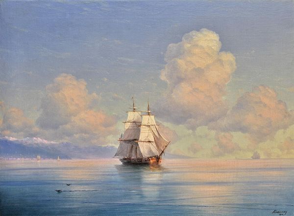 Ivan Konstantinovich Aivazovsky captured this seascape with oil on canvas, where we see a ship sailing calmly. The ship is the dominant symbol, resonating with historical, cultural, and even religious meanings. Since ancient times, ships have been more than a means of transport; they are symbols of journeys, exploration, and the traversing of the unknown. Think of the ship of the Argonauts in Greek mythology, or Noah's Ark, symbols of salvation and rebirth. Consider the ship as a symbol in art throughout the ages, recurring in different contexts, like Delacroix's stormy seas in his painting "Christ Asleep During the Tempest." The ship is constantly being reborn in our collective consciousness. In Aivazovsky’s work, the calm sea adds another layer, suggesting tranquility, but also the subconscious—that vast, uncharted territory of the human psyche. This image is charged with an emotional power that engages us, resonating with our own journeys, real or imagined. The ship sailing on still waters is a symbol, forever traversing the seas of time and memory.