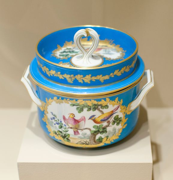 This sugar bowl with lid was made by Wedgwood. Though undated, its design and manufacture speak volumes. Wedgwood was the superstar of the 18th-century ceramics industry. He didn't just make luxury goods, he systemized their production. This piece is made of Jasperware, which was created through meticulous processes of mixing, firing, and polishing. Its distinctive matte finish and classical motifs were both a technical achievement and a savvy branding strategy. The sprigged decoration, resembling ancient cameos, speaks to Wedgwood’s ambition to elevate ceramics to the level of fine art. Yet, his true genius lay in understanding the market. Wedgwood skillfully tapped into the rising middle class’s desire for refined taste and luxury. Looking closely at this sugar bowl, we can see the imprint of both artistry and industry. It invites us to consider the complex relationship between craft, design, and the burgeoning forces of capitalism.