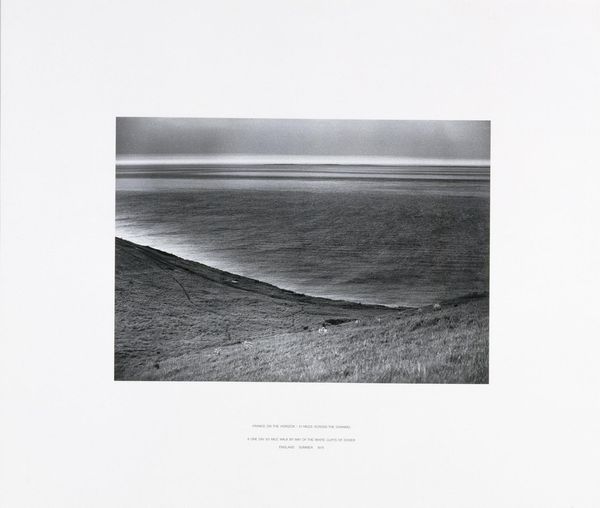 Editor: This is Richard Gordon's black and white photograph, "Santa Cruz, California," possibly taken between 1973 and 1994. I’m struck by the composition, how it's divided so starkly between this dark, almost oppressive interior space and the expansive, though somewhat bleak, beach scene outside. What do you see in this piece? Curator: I see a yearning, maybe, for escape. Or a profound awareness of being caught between worlds. The rigid geometry of the interior clashes with the organic form of the beach, that relentless ocean pulling our gaze outward. It feels deeply personal, doesn't it? I almost wonder if Gordon felt a similar pull between, say, his inner life and the bustling world just beyond the frame. Editor: That’s a great point. The window acts almost like a painting within the photograph itself, drawing a line between reality and an imagined space. Did Gordon work a lot with these kinds of internal/external dichotomies? Curator: That’s a question I often ponder! Many of his photographs play with framing – doorways, windows – as a way to explore not just the seen, but also the unseen, the implied, and the intensely felt. The darkness surrounding the room in the photo also evokes solitude, as if this particular corner of the world exists almost out of time. This could be an enduring portrait of the Santa Cruz that only existed inside Gordon. It invites us to see the world the way he felt it. What is it you will now feel whenever you see Santa Cruz after this moment? Editor: I think I’ll always see this photograph in my mind's eye – this specific, personal vision of Santa Cruz – even when I'm actually there. Curator: Precisely. A photograph, then, becomes more than a depiction – it’s an echo, a trace of a feeling. Editor: Well, I'll certainly look at landscape photography differently from now on.